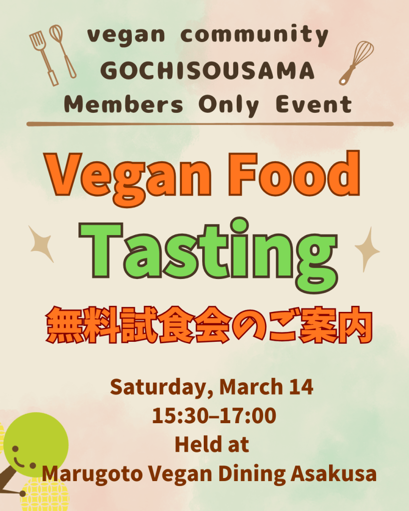【無料ヴィーガン試食会のご案内】ヴィーガンコミュニティ 🌱「GOCHISOUSAMA(ごちそうさま)」メンバー限定