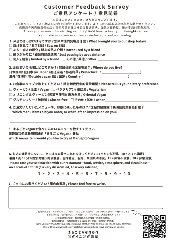 ぜひご来店の際は、アンケートへのご協力をお願いいたします。