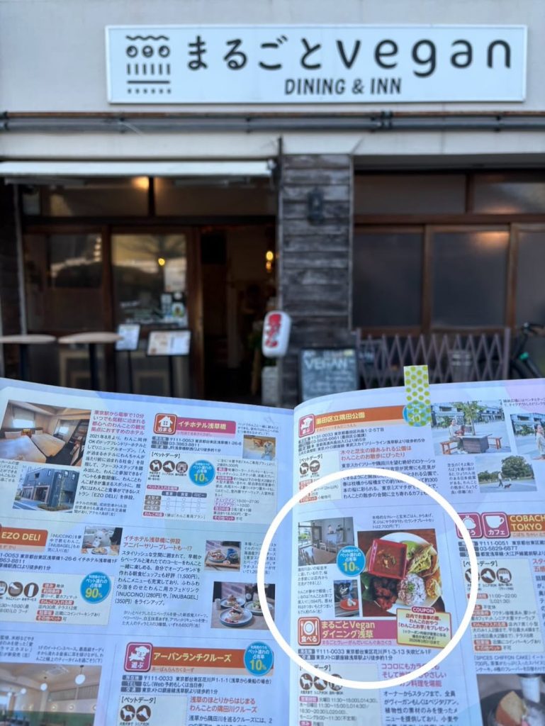 Marugoto Vegan Dining Asakusa has been featured in the travel magazine for people traveling with their dogs,