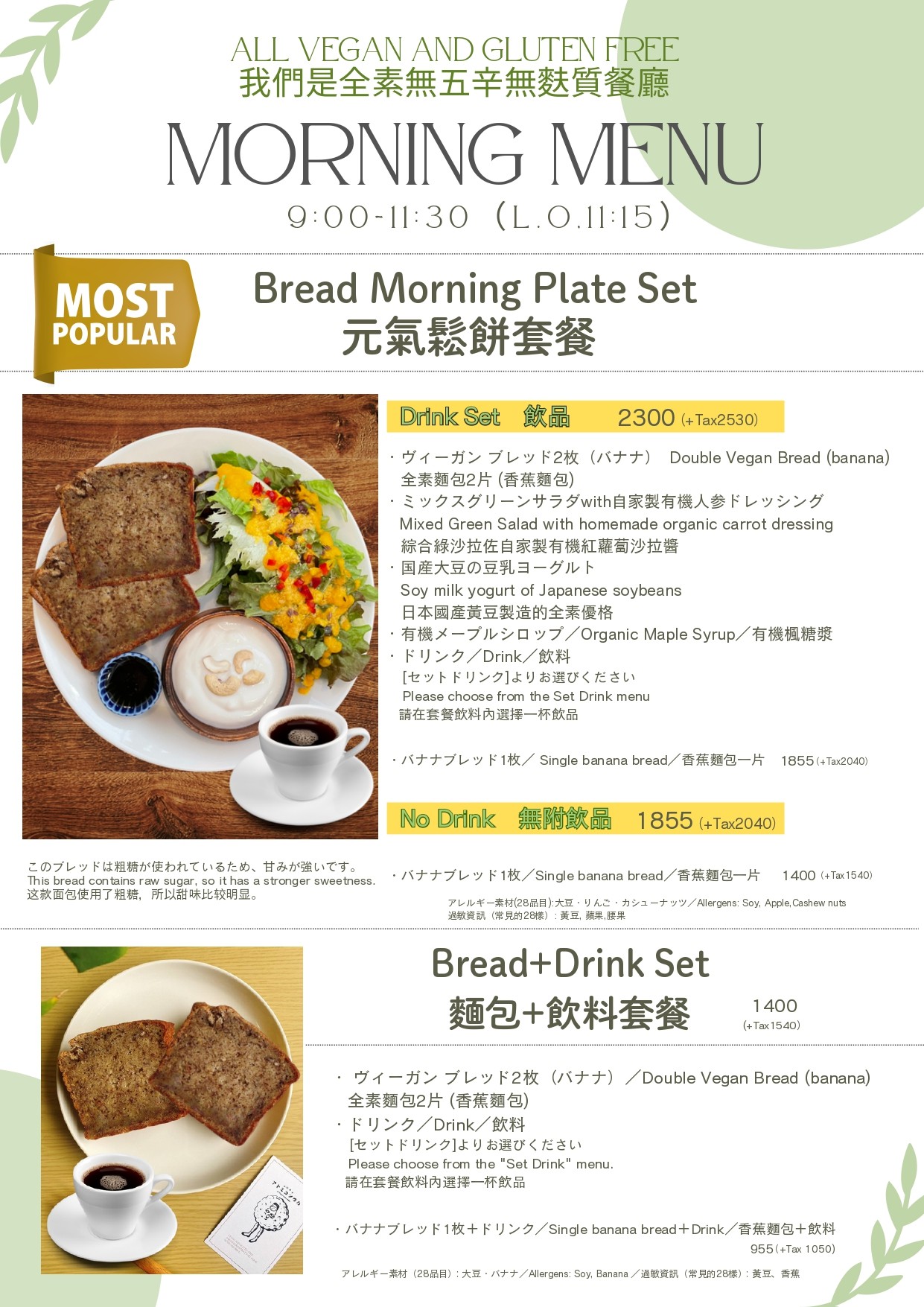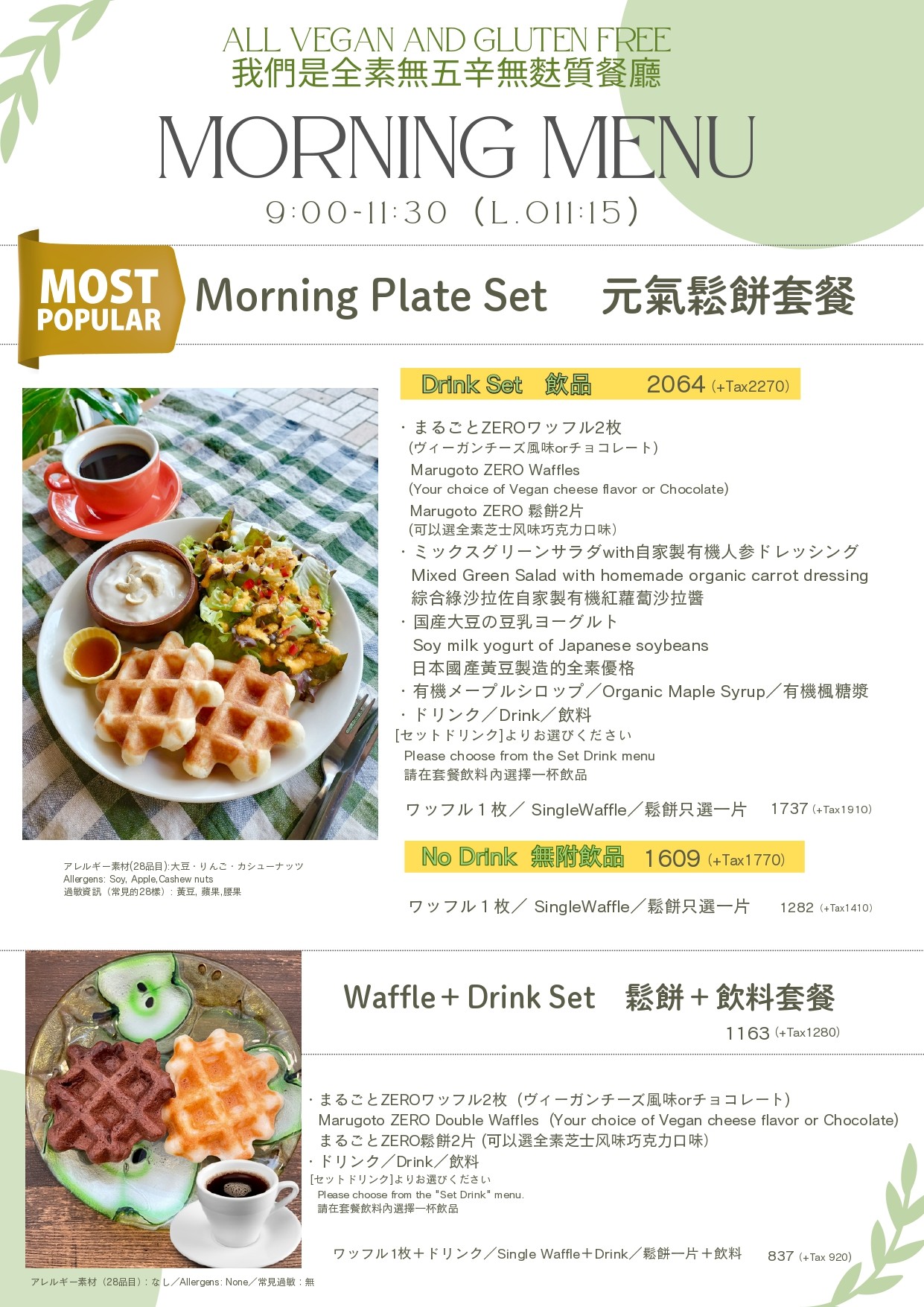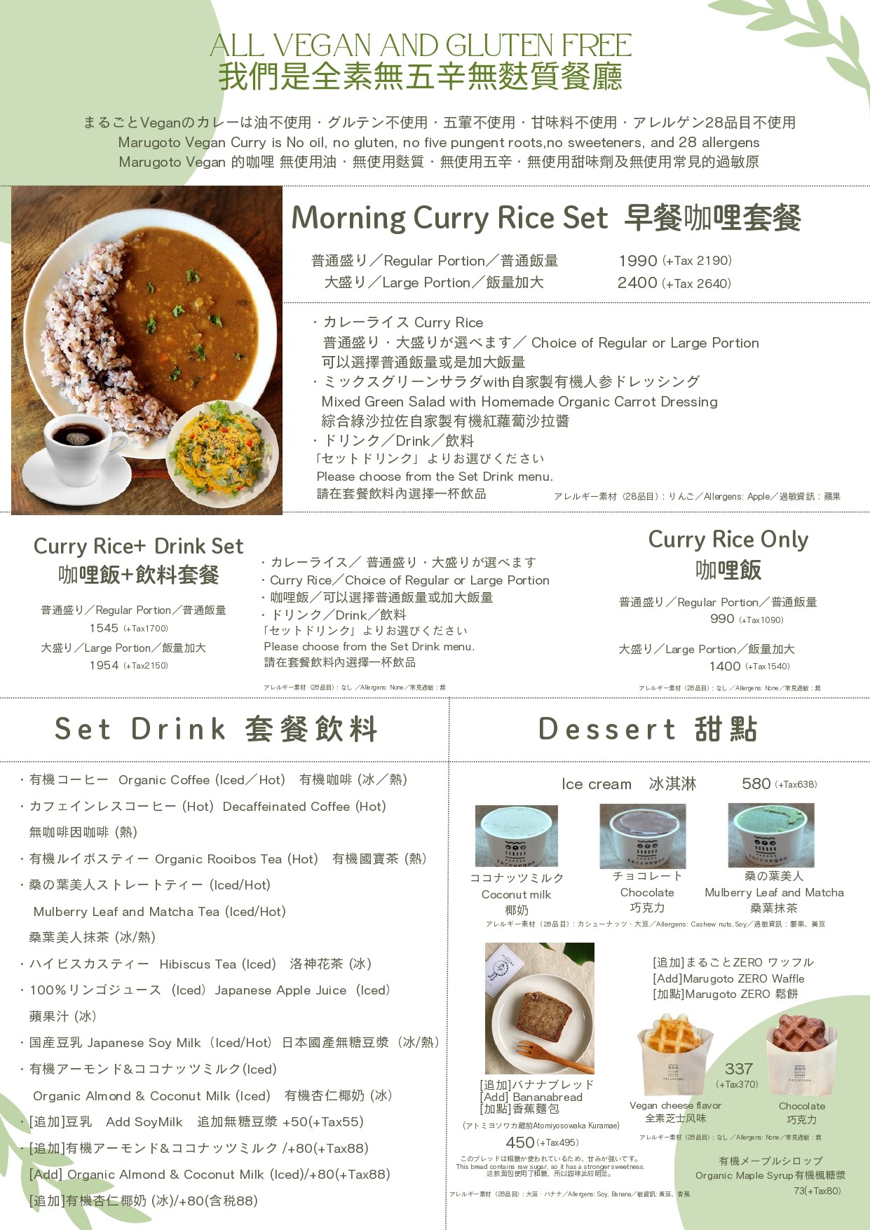 ・全メニューヴィーガン All menu items are vegan