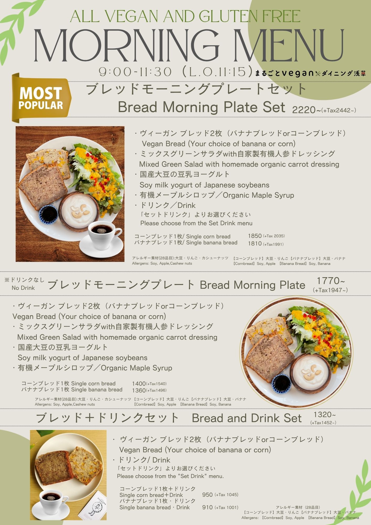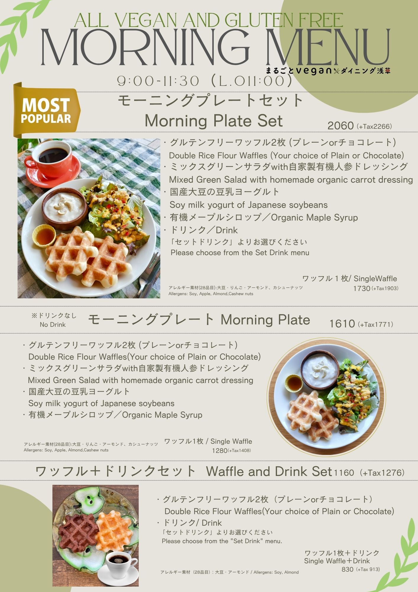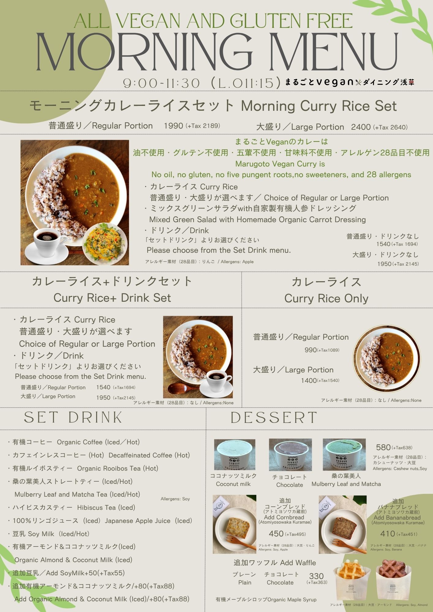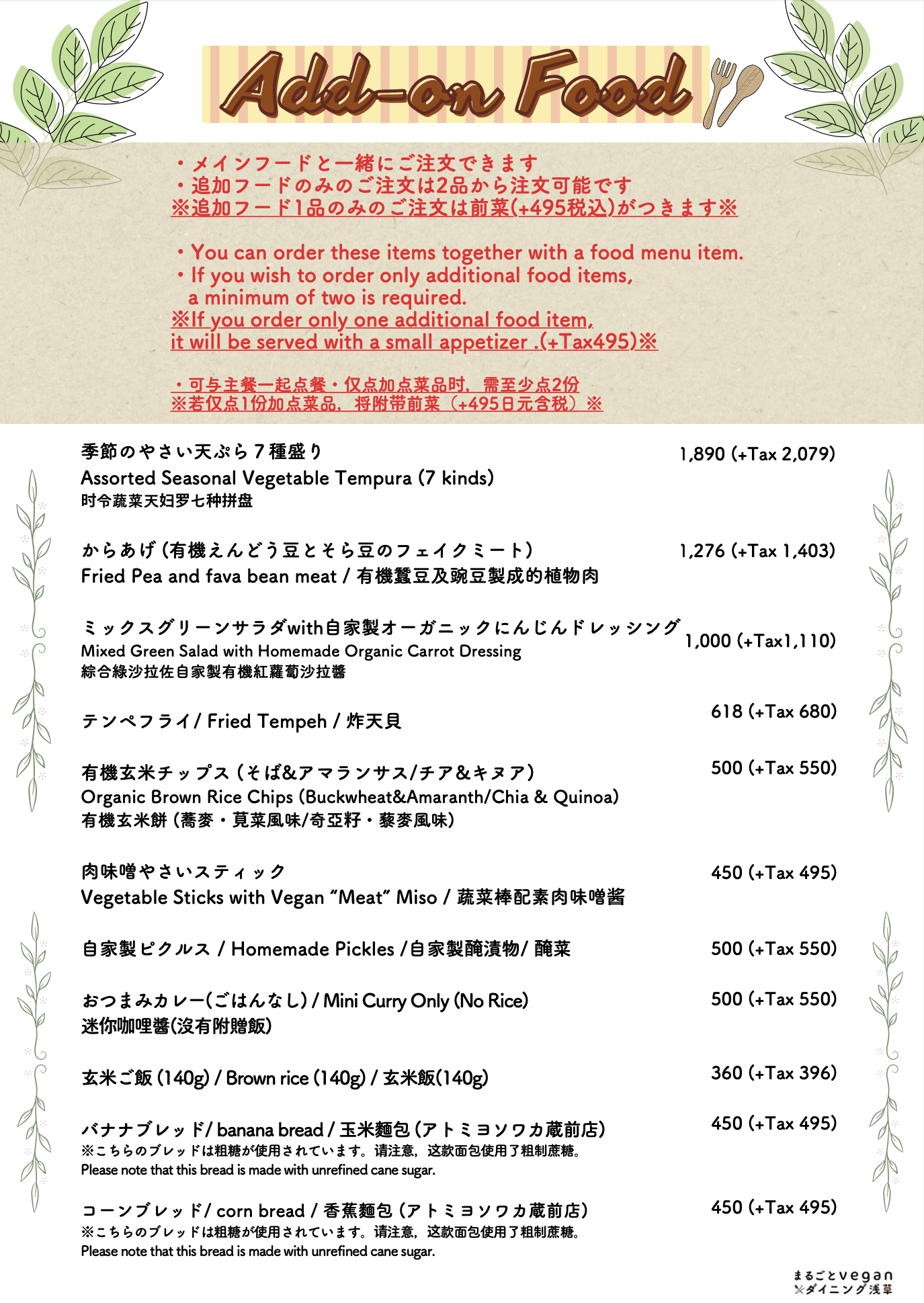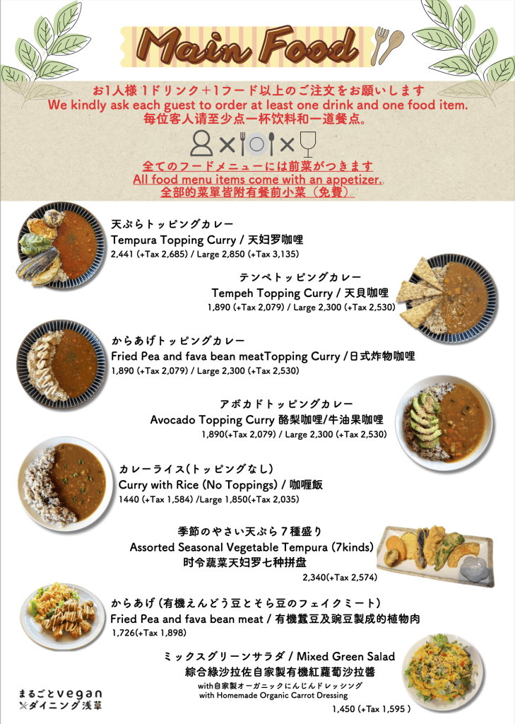 ・全メニューヴィーガン All menu items are vegan