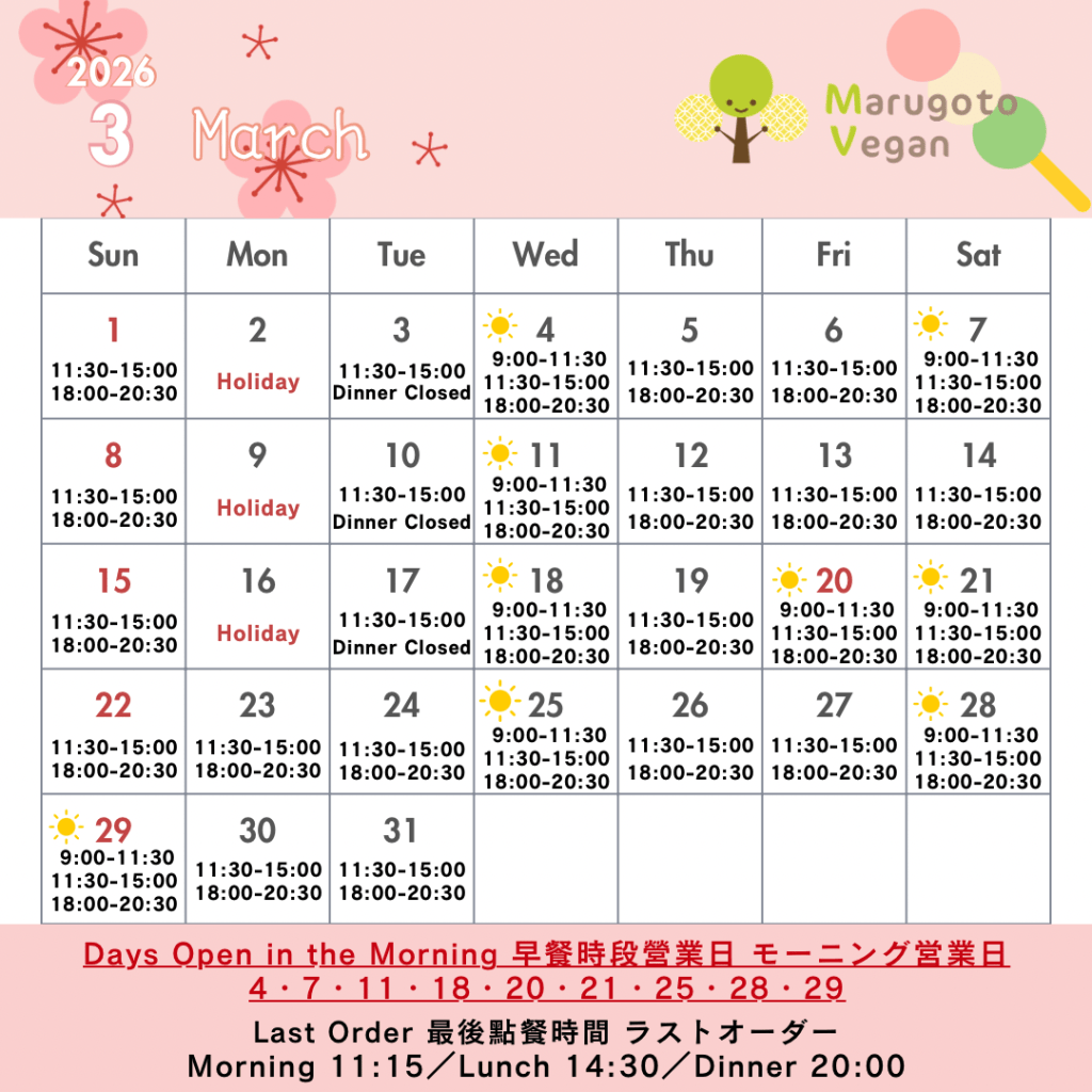 3/22〜は【定休日なし】で営業いたします! ※3/23.24.30.31日は夜営業もございます。