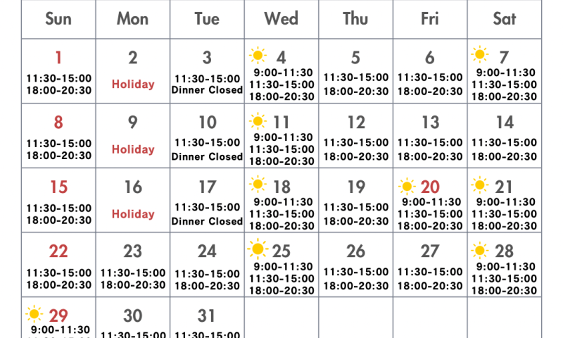 3/22〜は【定休日なし】で営業いたします! ※3/23.24.30.31日は夜営業もございます。